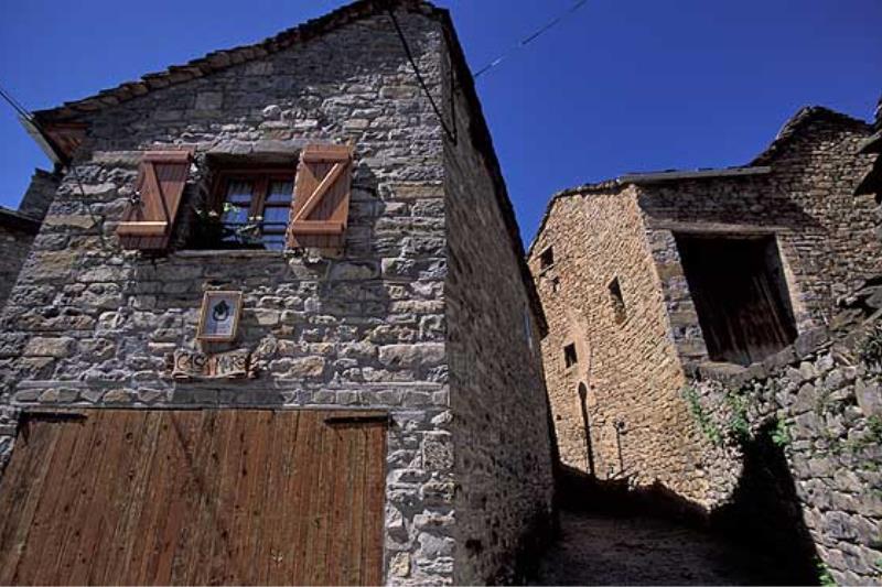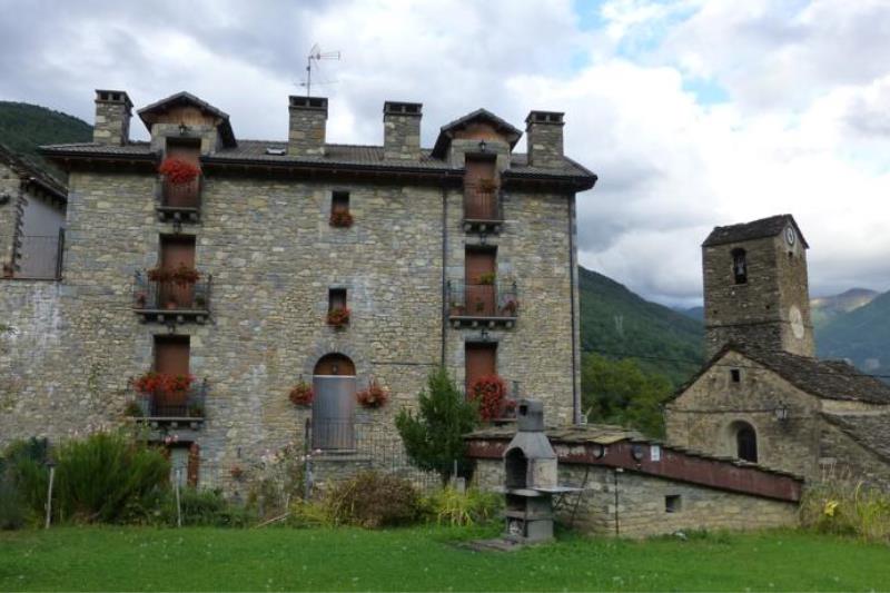a unos 98 kilómetros de Huesca, en la Comarca del Sobrarbe. En lo alto del