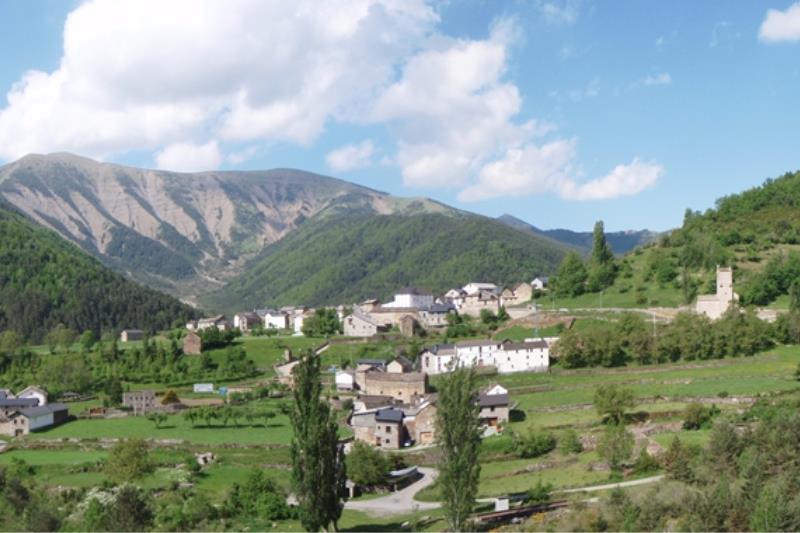 Se halla sobre la ladera de un montículo denominado La Serreta y, por tanto, sus calles, en declive, presentan plazuelas o rincones de singular tipismo, entre los que destaca el que, junto a la carretera, preside la Iglesia de San Miguel, recientemente restaurada y esbelta torre, cuya interesante traza arquitectónica de puro sabor románico rima con las vivienda, que en general, conservan características tradicionales de las casas de los altos valles del Pirineo.