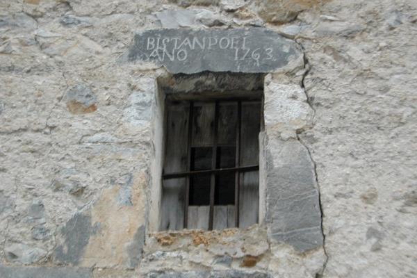 Curiosa la inscripción en la venta superior a la puerta, donde se puede leer, Bistanpoei Ano 1763.
