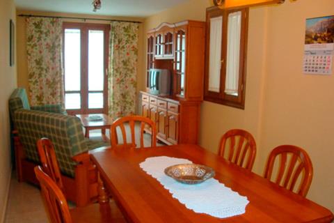Apartamento céntrico con capacidad para 4 personas. Consta  de habitación con cama de matrimonio, habitación doble con dos camas de 1.05m.,  cuarto de baño con bañera y secador de pelo, cocina equipada con  vitro-cerámica, microondas, frigorífico, horno, lavadora, menaje… y salón  comedor grande con TV. Se admite una mascota por alojamiento. Abierto todo el  año.